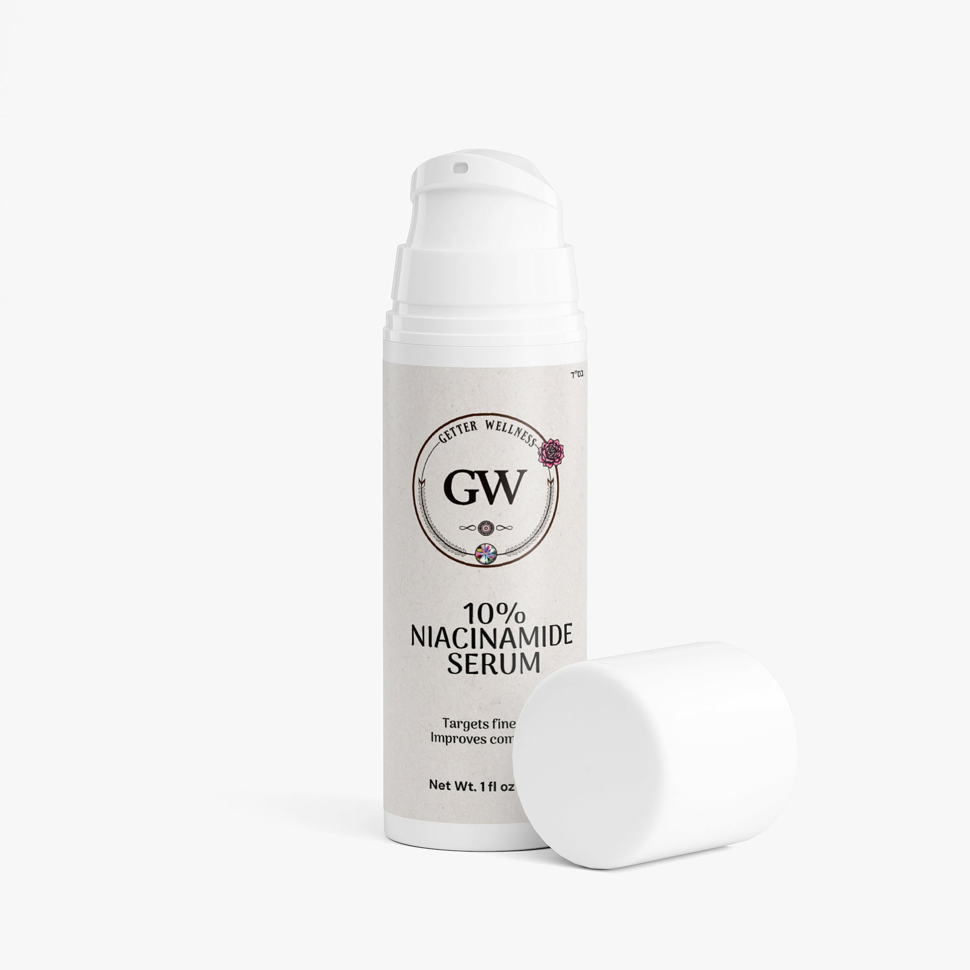 Experience the harmonious synergy of Sodium Hyaluronate and Propanediol, delivering deep hydration and moisture retention, in our concentrated 10% Niacinamide formulation. Indulge in the comforting benefits of Chamomilla Recutita Flower Extract and Allantoin, blending to nurture skin resilience and enhance a tranquil complexion. Tailored to minimize pore visibility and restore skin balance, our serum is a comprehensive solution for radiant, even-toned skin. Embrace the power of targeted skincare with our 10% Niacinamide Serum, an essential addition to your daily routine for a visibly healthier and more vibrant complexion.